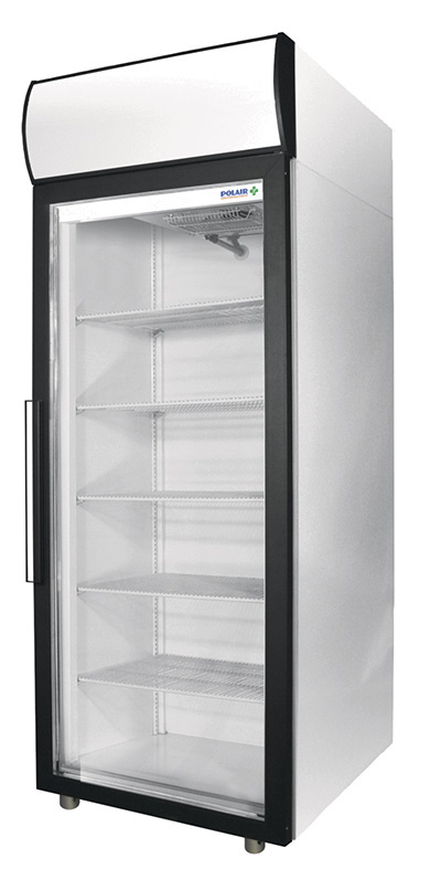 Холодильный шкаф со стеклянной дверью (стеклопакет в разборной алюминиевой раме) имеет вертикальную внутреннюю подсветку и подсветку канапе. Сторону открывания двери легко изменить. Внешние и внутренние обшивки шкафа изготовлены из стали с полимерным покрытием.