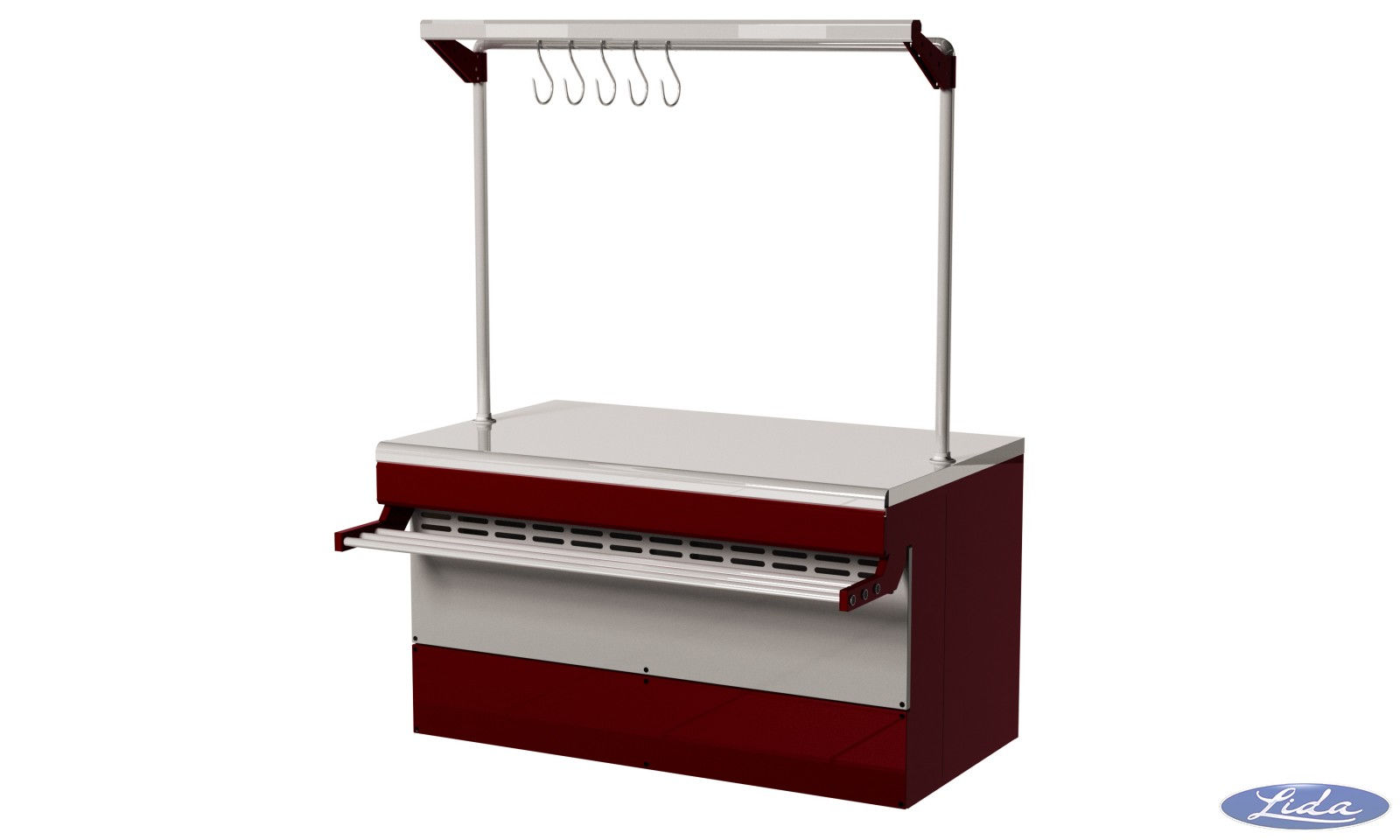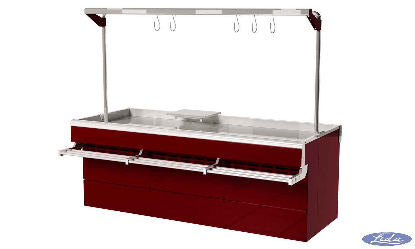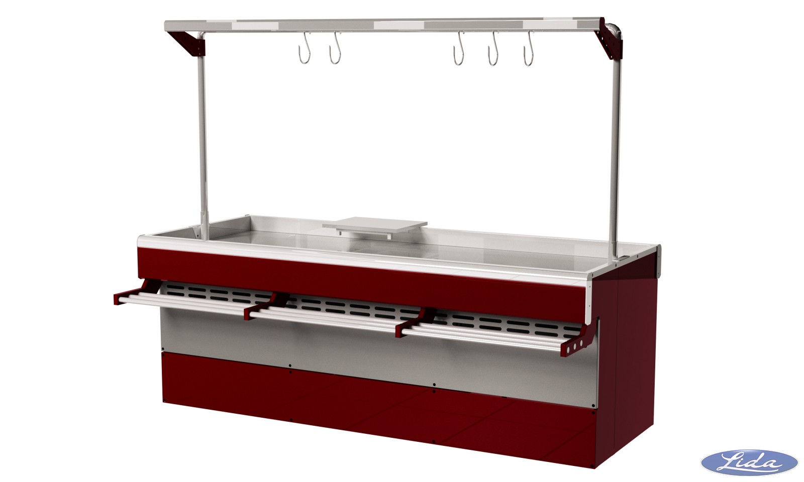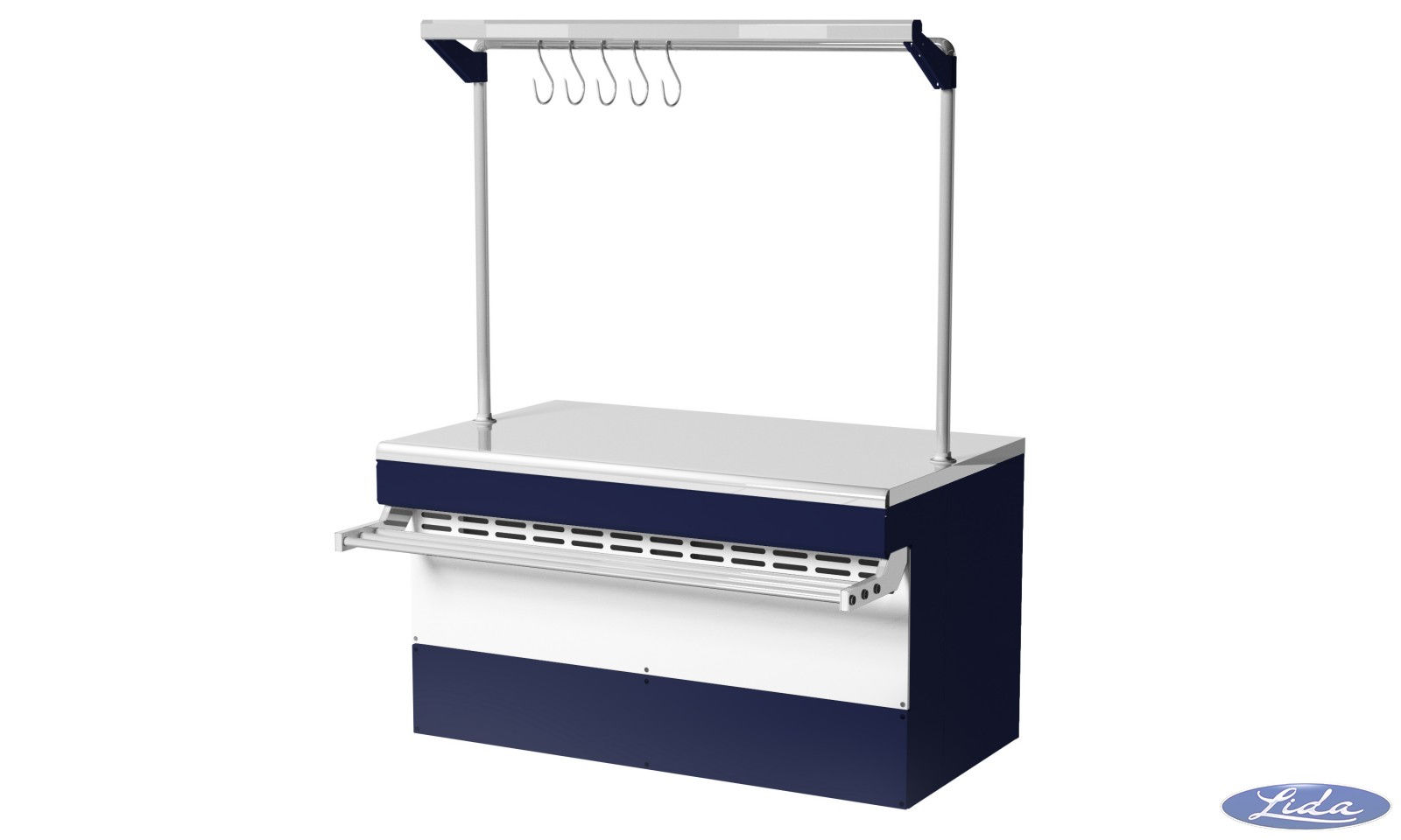 Стол предназначен преимущественно для экспозиции свежего мяса, рыбы, фрукты и овощи. Исполнение как на выносном, так и на встроенном холоде в различной цветовой гамме по каталогу RAL, в том числе стол может быть неохлаждаемым и под заказ любой длины.