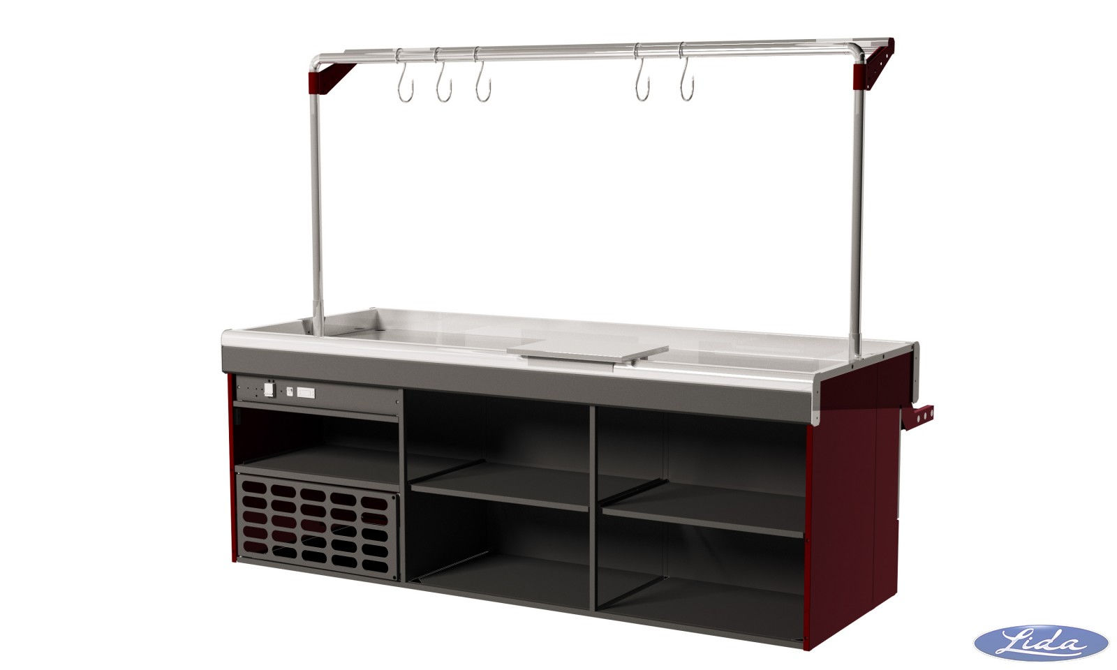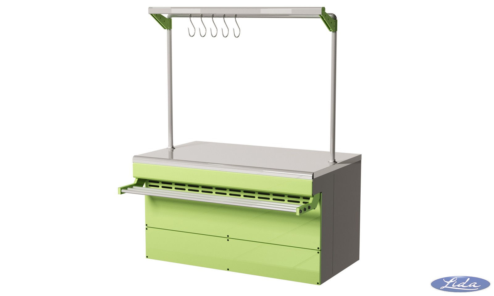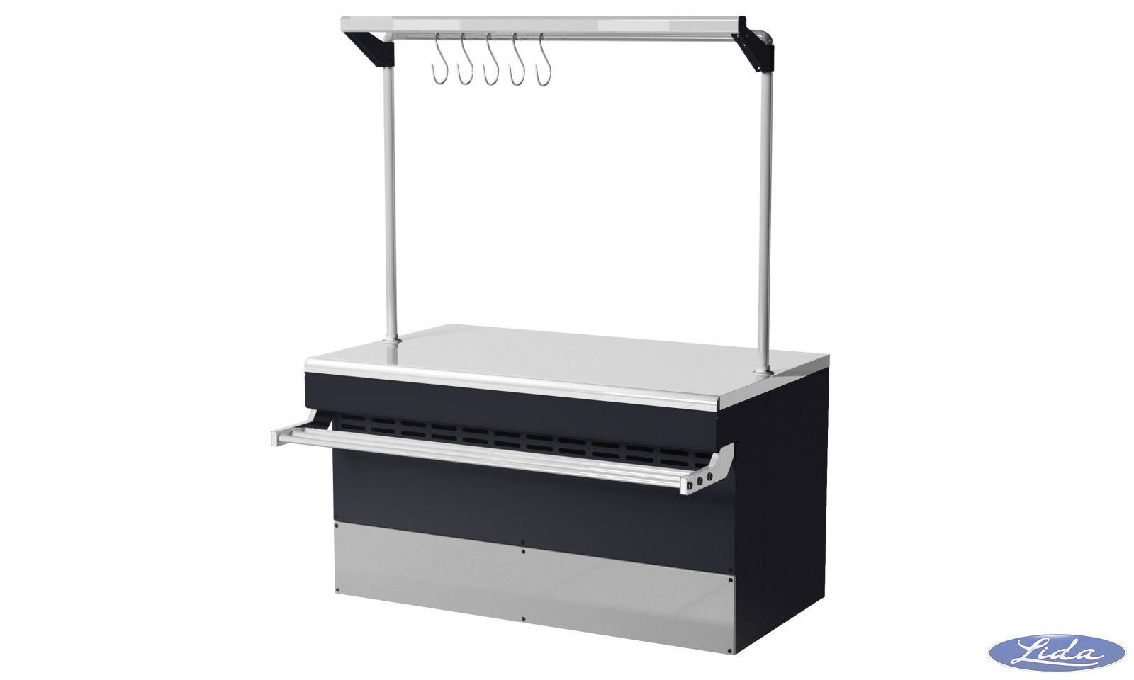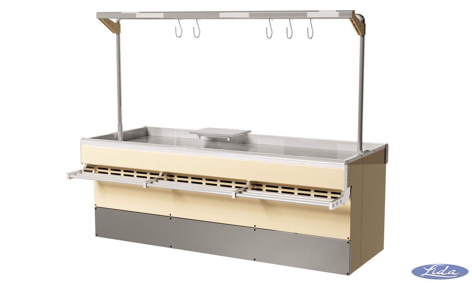 Стол предназначен преимущественно для экспозиции свежего мяса, рыбы, фрукты и овощи. Исполнение как на выносном, так и на встроенном холоде в различной цветовой гамме по каталогу RAL, в том числе стол может быть неохлаждаемым и под заказ любой длины.