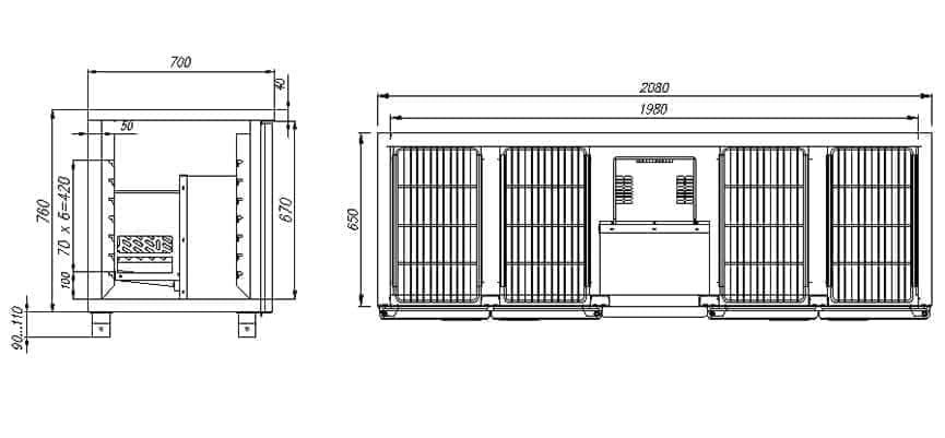 Стол холодильный Полюс T70 M4-1 9006 (4GN/NT) имеет несколько основных назначений - охлаждение и хранение продуктов питания внутри охлаждаемых объемов, нарезка и приготовление гастрономических изысков и блюд на нержавеющей поверхности холодильного стола, а также можно устанавливать на его поверхность технологическое и барное оборудование. Корпус является цельнозаливным со столешницей из стали, толщина металла 50 мм, снабжен динамической системой охлаждения с LED подсветкой. Дополнительные характеристики: