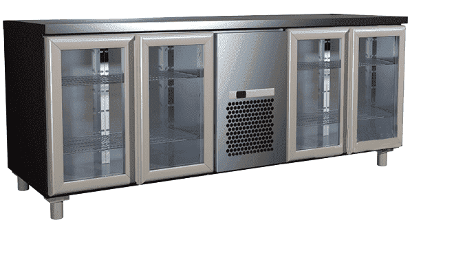 Стол холодильный Полюс T70 M4-1-G 9006 (4GNG/NT) имеет несколько основных назначений - охлаждение и хранение продуктов питания внутри охлаждаемых объемов, нарезка и приготовление гастрономических изысков и блюд на нержавеющей поверхности холодильного стола, а также можно устанавливать на его поверхность технологическое и барное оборудование. Корпус является цельнозаливным со столешницей из стали, толщина металла 50 мм, снабжен динамической системой охлаждения с LED подсветкой.