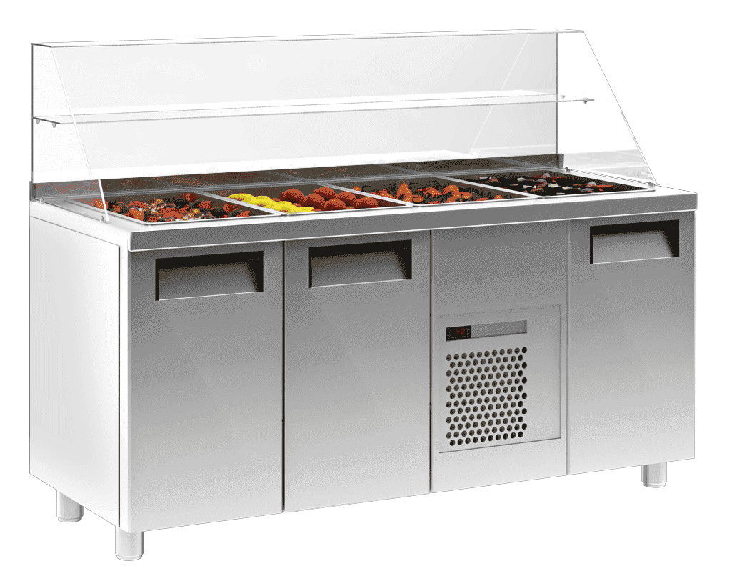 Возможно изготовление столешницы в 3-х вариантах: под гастроемкости GN 1/1, GN 1/6 и GN 1/3.