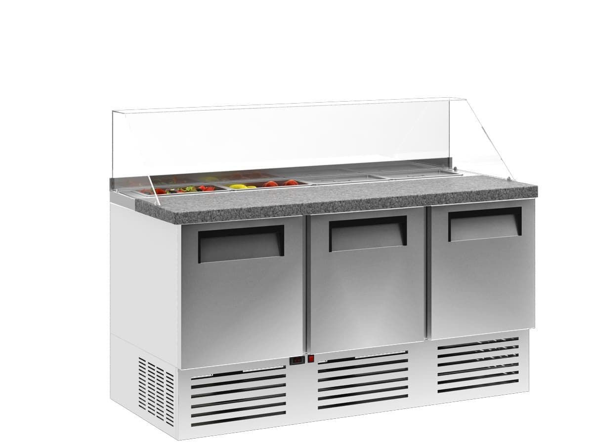 Стол холодильный Carboma T70 M2pizzaGN-2 0430 с нижним расположением агрегата используются для хранения пиццы и ингредиентов к ней в охлаждаемом состоянии. Столы используются на предприятиях общественного питания, ресторанах, кафе, пиццериях. Верхняя часть стола служит рабочей поверхностью для приготовления блюд, нижняя секция для хранения. Корпус является цельнозаливным из нержавеющей стали, толщина металла 43 мм, столешница из натурального или искусственного камня. Дополнительные характеристики: