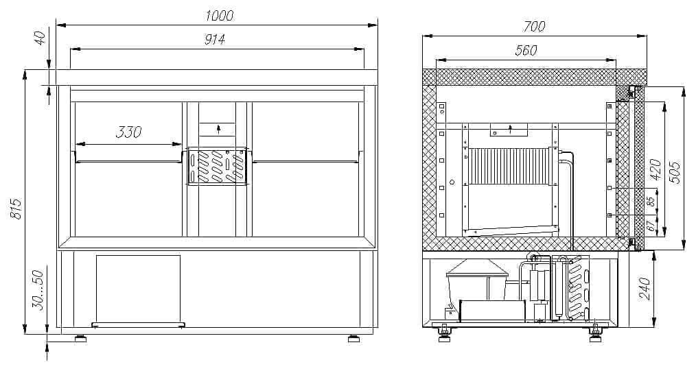 Стол холодильный Carboma T70 M2GN-2 0430 предназначен для раскатки теста, обработки ингредиентов для приготовления блюд, охлаждения и кратковременного хранения скоропортящихся продуктов и напитков на предприятиях общественного питания и торговли. Модель оснащена 2 полками-решетками и регулируемыми ножками высотой от 30 до 50 мм. Цельнозаливной корпус выполнен из нержавеющей стали, дверцы - из металла. Возможно исполнение модели с бортом и без борта. Дополнительные характеристики: