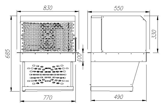 - вырезать проем размером 495 мм х 495 мм (для машины МLR 214 – 775 х 495) в потолочной панели камеры;