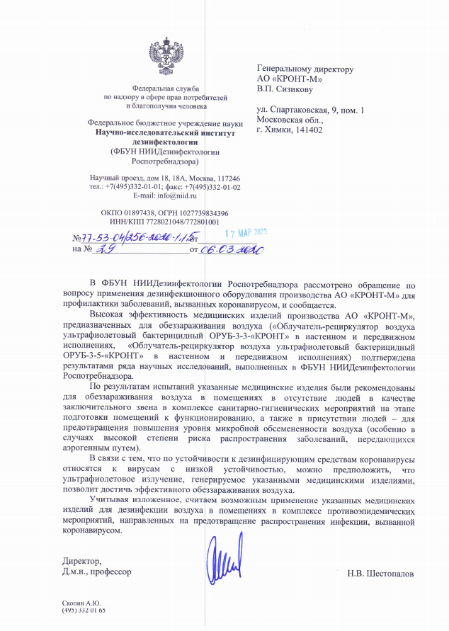 Рециркулятор «Дезар-4» с таймером наработки ламп оснащён передвижными опорами, препятствует распространению заболеваний, передающихся воздушно-капельным и воздушным путем, в том числе активно противодействует развитию атипичной пневмонии. Устройство используется для асептической обработки помещений. Ультрафиолетовое бактерицидное излучение является эффективным санитарно-противоэпидемическим средством, направленным на подавление жизнедеятельности микроорганизмов в воздушной среде с повышенным риском распространения инфекционных заболеваний.Характеристики: