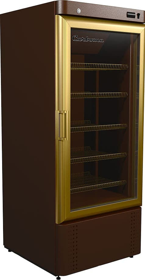 Шкаф холодильный Carboma R560Св предназначен для охлаждения и кратковременного хранения напитков на предприятиях общественного питания и торговли. Модель оснащена 5 регулируемыми по высоте полками-решетками, которые можно установить "под углом", распашной дверцей, замком и ножками высотой от 30 до 50 мм. Корпус выполнен из оцинкованной стали, дверца - из стекла. Дополнительные характеристики:
