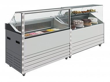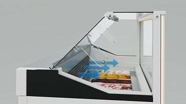 CARBOMA TWINFREEZ TM: Технология одноконтурной морозильной цепи, совмещающая два последовательно соединенных элемента. Трубчатый – для охлаждения резервной зоны позволяет организовать запас мороженого во внутреннем хранилище витрины