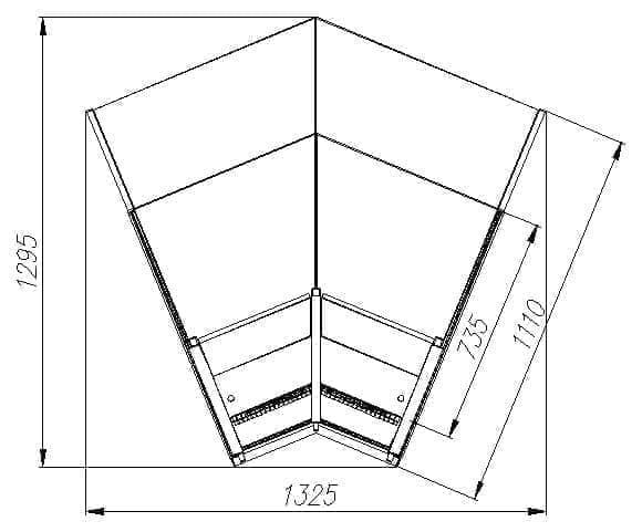 Внимание! На фото аналогичная модель другого размера с внешним углом 90° и ламинировынными боковинами.