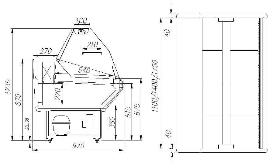 Витрина холодильная Полюс G95 SV 1,8-1 (ВХСр-1,8) предназначена для демонстрации, охлаждения и кратковременного хранения мяса, птицы, колбасных, молочных и гастрономических изделий на предприятиях общественного питания и торговли. Модель оснащена микропроцессорным блоком управления с индикатором температуры, стеклянной полкой, ночными шторками из органического стекла и регулируемыми ножками высотой от 20 до 35 мм. Зона выкладки и столешница выполнены из шлифованной нержавеющей стали. Корпус имеет пенополиуретановую теплоизоляцию. Дополнительные характеристики: