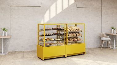 CUBE LIGHT – современное оформление торговых пространств. Кубический дизайн, подсветка каждой полки, многообразие цветовой палитры сделают интерьер привлекательным. Подходит для демонстрации пирожных, выпечки, пиццы, хлеба. Благодаря наличию в витрине защитных металлических стоек, закрывающих соединение стекол, рекомендуется устанавливать в зонах высокой проходимости покупателей и риском повреждения витрины сумками и чемоданами