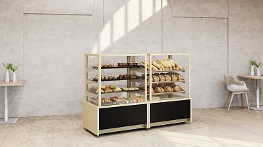 - Хлебная витрина - без холодильной системы, с передним стеклом и без переднего стекла, LED освещение каждой полки, деревянные решетки