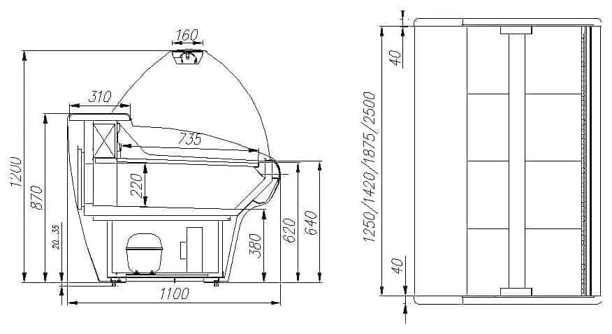 Витрина холодильная Carboma G110 SM 2,5-1 (ВХС-2,5 G110) (статика) используется на предприятиях общественного питания и торговли для охлаждения, кратковременного хранения, демонстрации и продажи продуктов питания, салатов, молочных и других гастрономических изделий. Модель оснащена дополнительным накопителем для продуктов со стороны продавца и регулируемыми ножками высотой от 20 до 35 мм. Нижний уровень и столешница выполнены из шлифованной нержавеющей стали, передняя панель - из крашеной стали, боковины - из серебристого пластика. Дополнительные характеристики:
