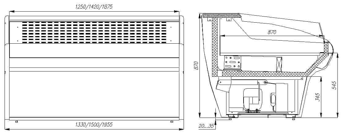 Витрина холодильная Carboma G110 VM 1,5-2 (ВХСо-1,5 G110) (динамика) используется на предприятих общественного питания и торговли для демонстрации, охлаждения, кратковременного хранения и продажи продуктов питания, салатов, молочных и других гастрономических изделий. Модель оснащена регулируемыми ножками высотой от 20 до 35 мм. Нижний уровень и столешница выполнены из шлифованной нержавеющей стали, передняя панель - из крашеной стали, боковины - из серебристого пластика.