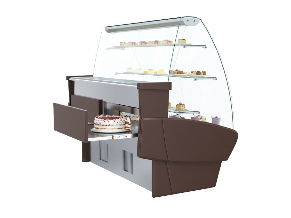 Витрина кондитерская Полюс K95 SM 1,2-1 (ВХСд-1,2) предназначена для демонстрации, охлаждения и кратковременного кондитерских изделий, десертов и сэндвичей на предприятиях общественного питания и торговли. Модель оснащена микропроцессорным блоком управления с индикатором температуры, 3 полками, выдвижными поддонами, ночными шторками из органического стекла и регулируемыми ножками высотой от 20 до 35 м. Зона выкладки и столешница выполнены из нержавеющей стали. Корпус имеет пенополиуретановую теплоизоляцию.