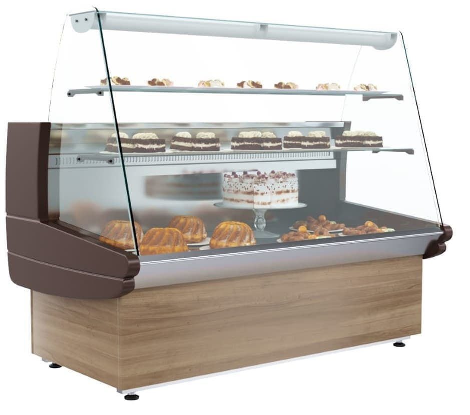 Витрина кондитерская Полюс K85 SM 1,2-1 (ВХСд-1,2 ЭКО) предназначена для демонстрации, охлаждения и кратковременного хранения кондитерских изделий, десертов и сэндвичей на предприятиях общественного питания и торговли. Модель оснащена микропроцессорным блоком управления с индикатором температуры, 2 полками, ночными шторками из органического стекла и регулируемыми ножками высотой от 20 до 35 м. Зона выкладки и столешница выполнены из оцинкованной стали серого цвета. Корпус имеет пенополиуретановую теплоизоляцию.