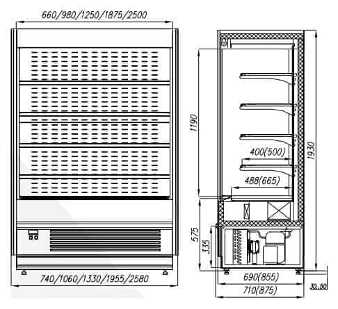 Горка холодильная Carboma FC 20-08 VV 1,3-1 (распашные двери) используется на предприятиях общественного питания и торговли для охлаждения, кратковременного хранения, демонстрации и продажи напитков, мяса, птицы, колбасных, молочных и гастрономических изделий. Модель оснащена энергосберегающим стеклопакетом, 2 распашными дверьми с петлями с доводчиком, полками с кронштейнами c возможностью расположения под углом и изменения высоты и регулируемыми ножками высотой от 30 до 50 мм. Корпус выполнен из окрашенной стали с ППУ-изоляцией. Дополнительные характеристики: