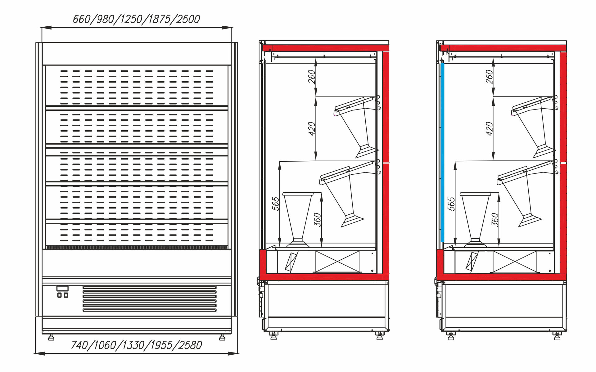 - Для витрин пристенных с фронтом типоразмер по длине 0.6; 0,7 оснащен одной распашной дверью(правое открывание) с возможностью перенавески в заводских условиях