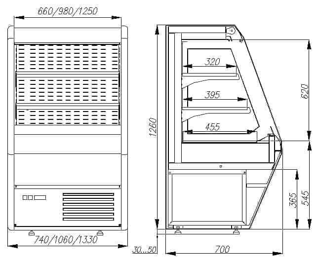 Горка холодильная Carboma F 13-07 VM 1,0 -2 (Carboma 1260/700 ВХСп-1,0) используется на предприятиях общественного питания и торговли для охлаждения, кратковременного хранения, демонстрации и продажи напитков, мяса, птицы, колбасных, молочных и гастрономических изделий. Модель оснащена усиленными боковинами со стеклопакетом, 2-мя полками c возможностью расположения под углом и изменения высоты, ночной шторкой и регулируемыми ножками высотой от 30 до 50 мм. Корпус выполнен из оцинкованной стали с ППУ изоляцией, внешние обшивки и полки из стали с полимерным покрытием серебристого цвета, боковины - из пластика. Дополнительные характеристики: