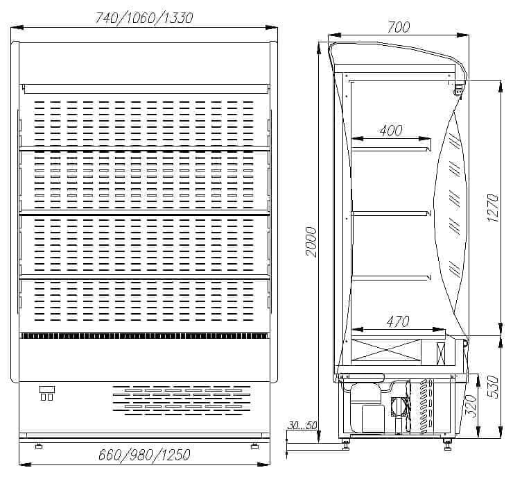 Горка холодильная Полюс F 20-07 VM 1,0-2 (ВХСп-1,0) предназначена для демонстрации, охлаждения и кратковременного хранения мяса, птицы, колбасных, молочных и гастрономических изделий на предприятиях общественного питания и торговли. Модель оснащена контроллером, базовым поддоном, ночными шторками, 3 полками и регулиуемыми ножками высотой от 30 до 50 мм. Корпус выполнен из оцинкованной стали с пенополиуретановой теплоизоляцией, боковые панели - из полистирола со стеклом, внешняя и внутренняя обшивки и полки - из стали с полимерным покрытием. Дополнительные характеристики: