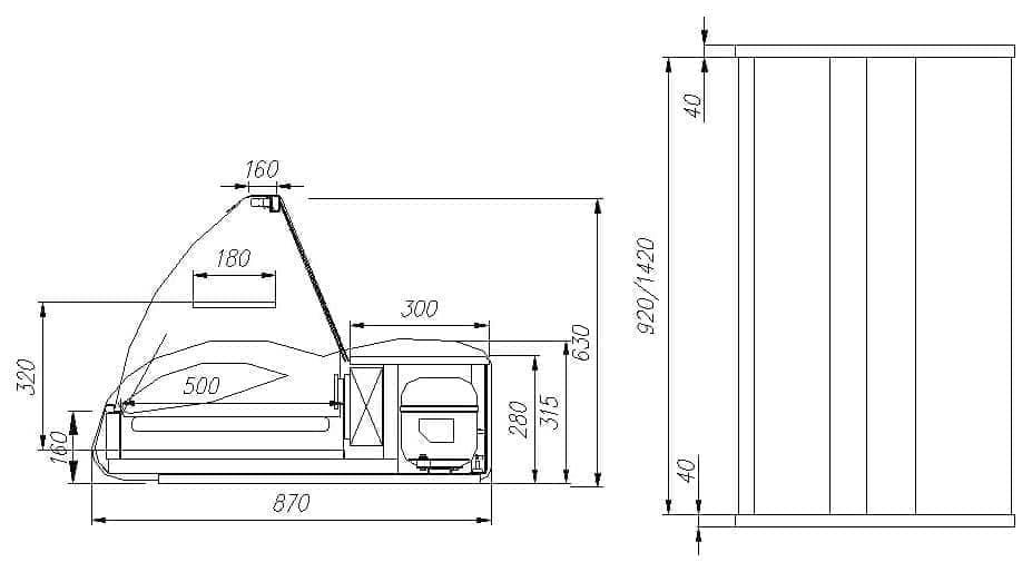 Витрина холодильная Полюс А87 SV 1,0-1 (ВХСн-1,0 Арго) предназначена для демонстрации, охлаждения и кратковременного хранения кондитерских изделий и десертов "семифредо" на предприятиях общественного питания и торговли. Модель оснащена датчиком-реле температуры, неохлаждаемой полкой и ночными шторками из органического стекла. Передняя обшивка, столешница и полка выполнены из нержавеющей стали, боковины - из черного пластика. Корпус имеет пенополиуретановую теплоизоляцию. Дополнительные характеристики:
