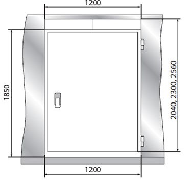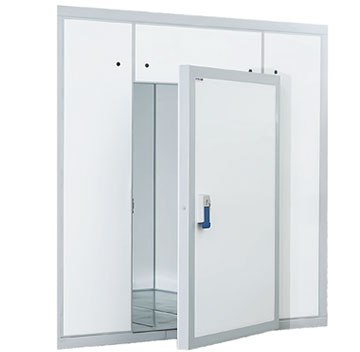 Дверной блок с контейнерной дверью предназначен для провоза тележек и проноса крупногабаритных грузов. Используется в средне- и низкотемпературных камерах.