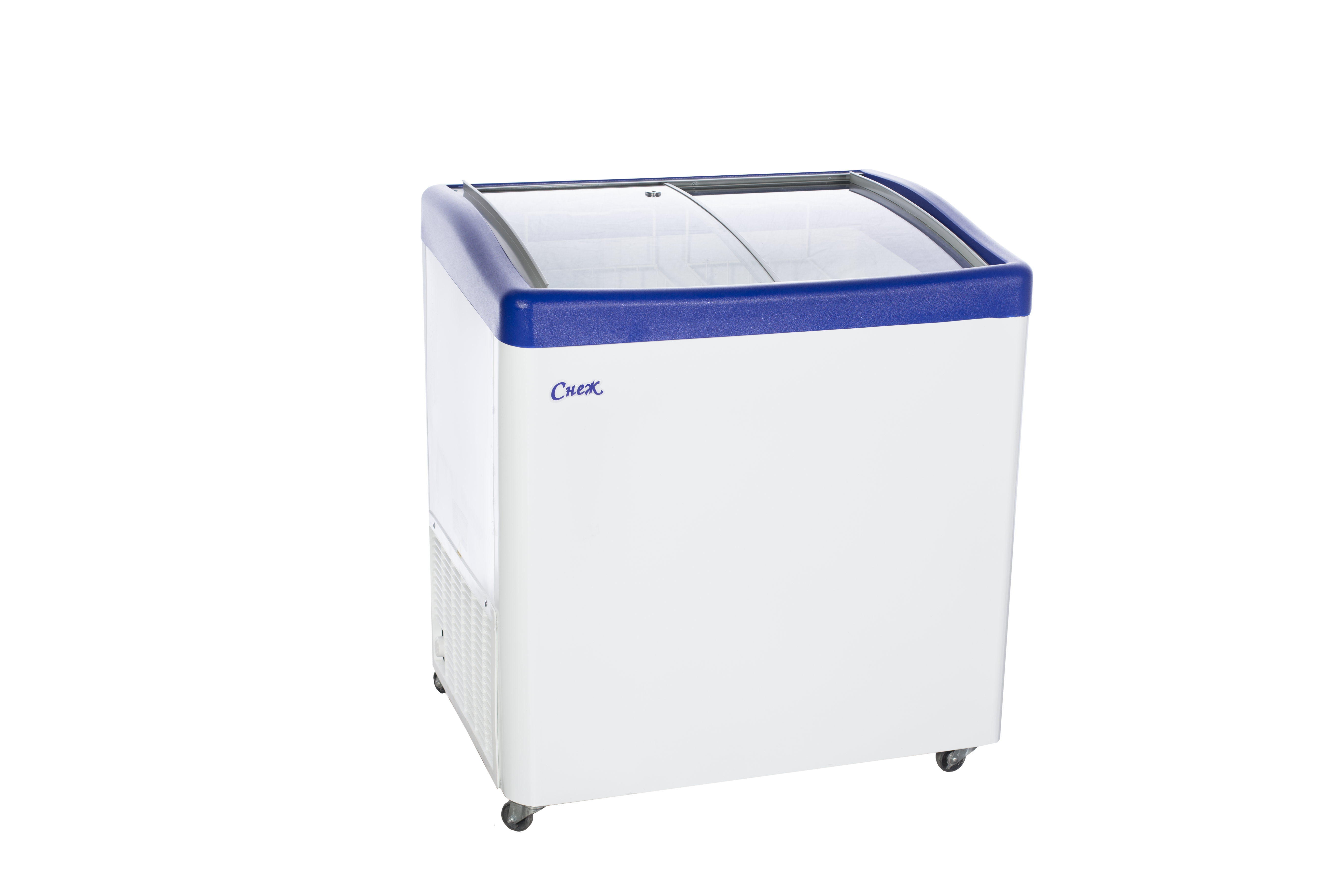 Морозильный ларь МЛГ-250 с выпуклой раздвижной стеклянной крышкой обеспечивает наглядность и легкий доступ к товарам. Гнутое стекло придает более привлекательный дизайн, стимулирующий совершить покупку. Поэтому такой морозильный ларь еще называют "импульсным".